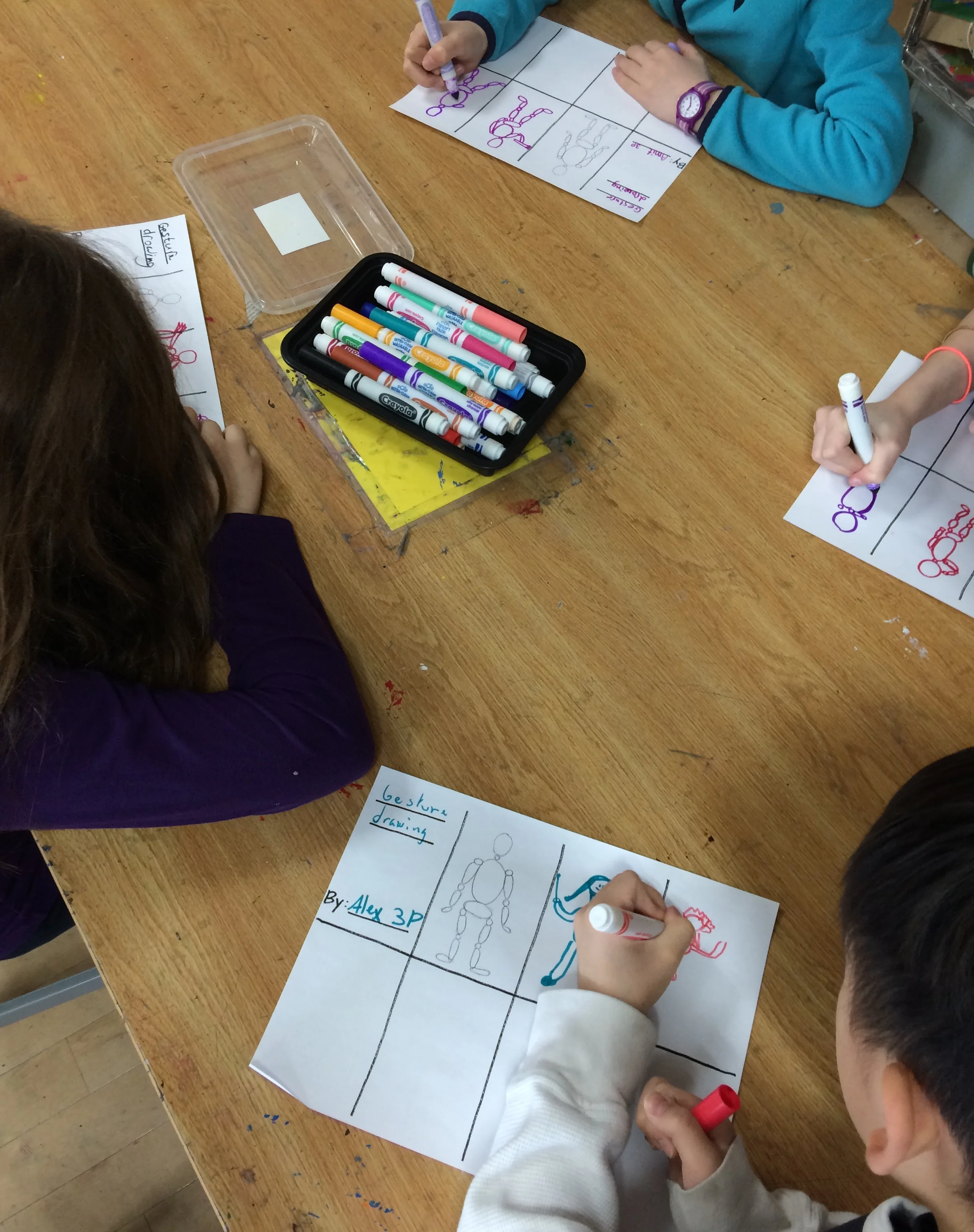 During this one day mini-lesson, students practiced gesture drawing using peer models.