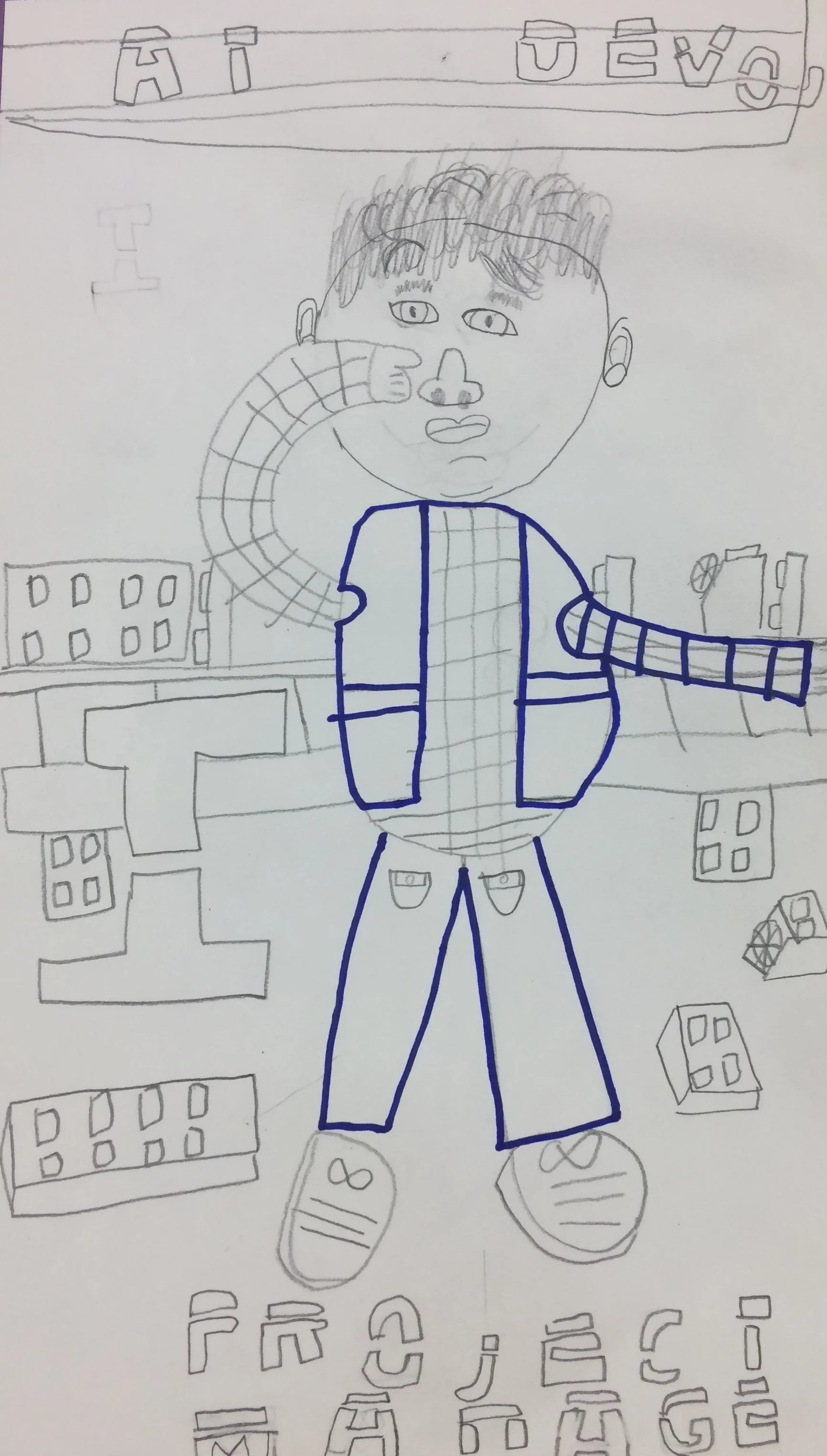 After practicing gesture drawing, students brainstormed activities they enjoy doing at Devo, and drew portraits of themselves doing their chosen activities.